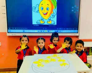 A mango fiesta, or mango festival, is a fun event where people celebrate the delicious fruit, the mango, by showcasing its many varieties, holding sessions like mango eating and tasting contests, and painting an image of a mango. Our preschool students celebrated the mango fiesta with great excitement and joy. To mark the occasion, the little ones brought a variety of delicious mango treats to school, such as mango pudding, cake, and mango juice, to relish the delightful taste of mango as a part of the celebration. Kids also took part in a collective art activity.
