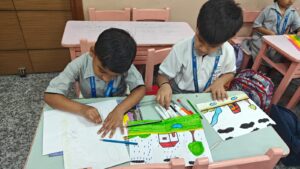 A Poster Making Activity was conducted for the students of Class I, aiming to instill awareness and appreciation for our rich Indian heritage. The young learners enthusiastically participated by creating a vibrant poster, pasting pictures of various elements symbolizing India’s cultural legacy,including monuments,traditional attire,festivals,and art forms.