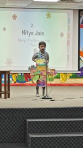 As a part of the English Week “Reflection” celebration in our school, a Story-Telling Competition was held on 10th July 2025 for the students of Class 2. The young storytellers narrated a variety of interesting and imaginative tales of different authors with great expression, voice modulation and confidence. The event aimed to boost their speaking skills and creativity. All participants performed wonderfully, and the best performers were awarded with certificates. It was a delightful and inspiring event that brought stories to life.