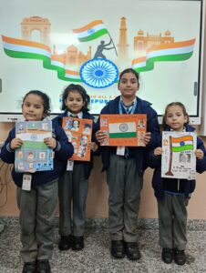 The students of Class 1 celebrated Republic Day with great enthusiasm by participating in a collage making activity, where they created colourful collages by pasting pictures of our freedom fighters and images related to their beloved country. This was followed by a discussion on the importance of Republic Day, its relevance, and the struggles and sacrifices of our freedom fighters. The students participated actively and thoroughly enjoyed the activity, making it a meaningful and engaging learning experience.