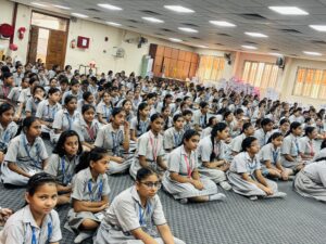 A workshop on Menstrual Hygiene Awareness was organised on Saturday, 5th July 2025, for the girls of Classes VI to VIII. The purpose of the session was to create awareness about the physical and emotional changes during puberty, with special focus on menstruation, hygiene practices, and removing the stigma attached to it. The discussion began with an explanation of changes during adolescence such as breast development, growth of body hair, increase in height and weight, the onset of menstruation, and mood variations. Students were also informed about the menstrual cycle—its onset between 9 to 14 years of age, its monthly duration of 28–35 days, and the 3–7 day flow caused by the shedding of the uterine lining.